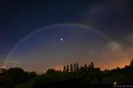 A moonbow (also known as a lunar rainbow, lunar bow or white rainbow) is a rainbow produced by the moon rather than the sun. Moonbows are relatively faint, due to the smaller amount of light from the Moon. They are always in the opposite part of the sky from the moon.